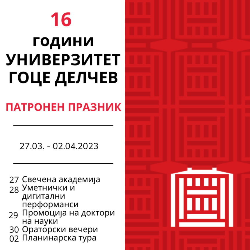 „Од самите почетоци Универзитетот „Гоце Делчев“ започна една динамична развојна политика како резултат на што и релативно бргу се етаблираше меѓу Универзитетите, благодарение на сите наши претходни ректори, декани , проректори и професори. Сите тие се вградија во реализацијата на идејата, и сметаме дека сонот на основачите на Универзитетот е остварен. Имаме институција која во сите параметри е респектабилна и којашто овозможува продукција на квалитетни и компетентни кадри но и истовремено овозможува и соработка со опшеството во многу полиња,“ вели ректорот на УГД, Дејан Мираковски.