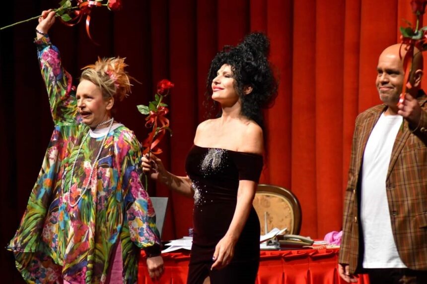 Главната улога во оваа комедија ја игра Вукиќевиќ, а на сцената како нејзини партнери се македонските актери: Магдалена Ризова – Черних и Сашо Ристовски.
