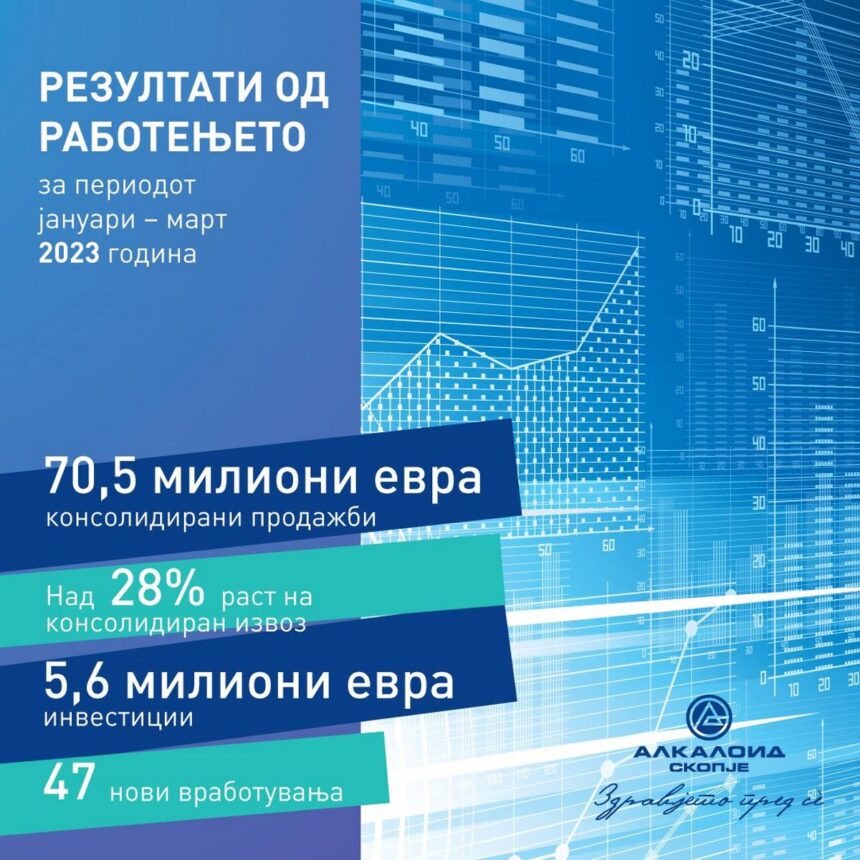 Според единечниот биланс на успех, во периодот јануари – март 2023 година продажбите достигнуваат 3.104.714.658 денари, што е за 15 % повеќе во споредба со истиот период од минатата година. Вкупните консолидирани продажби, пак, достигнуваат 4.346.596.075 денари, што е за 20 % повеќе во споредба со истиот период од минатата година.