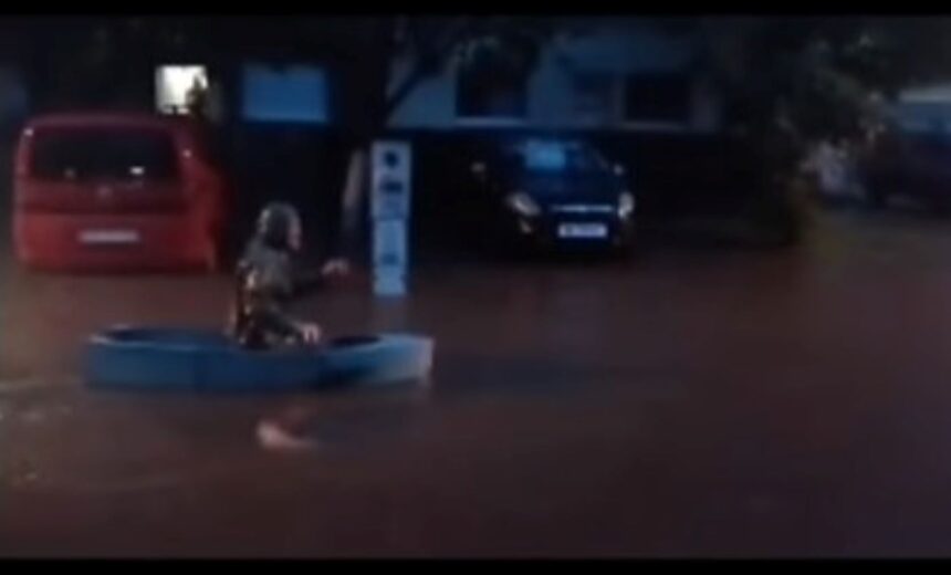 Колку дожд падна најдобро покажува видеото од Нови Сад, на кое се гледа како човек весла низ центарот на градот.