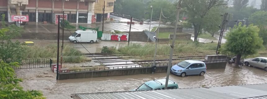 За половина час колку што траеше невремето попладнево, улиците на Велес се претворија во езера. Силните врнежи се слеаја преку ридовите до центарот на градот, што дваесетина минути го парализираа сообраќајот.