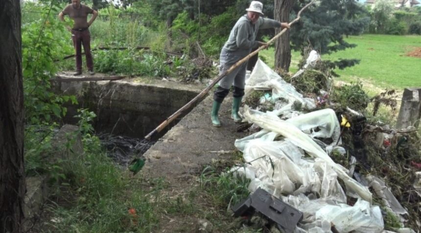 Фрлените отпадоци, остатоци од мебел, остатоци од домашни животни, пластична амбалажа и друг вид ѓубре ја затнаа решетката на каналот пред подземниот тунел и сериозно го покачија нивото на водата во каналот.