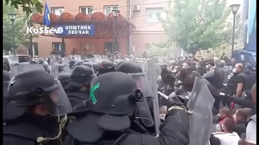 Sukobili se Srbi sa KFOR-om u Zvečanu. Više povređenih vojnika, demonstranata, veće količine suzavca, šok bombe, lete kamenice, flaše, oborene kante