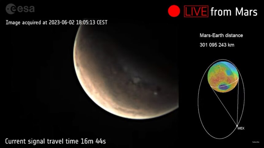 Дури и денес не го гледавме Марс без одлагање бидејќи на светлината и е потребно извесно време да патува од оваа далечна планета до Земјата. Како и да е, ова треба да биде најблиску до известување во живо од друга планета во Сончевиот систем. За да го прослави 20-тиот роденден на своето вселенско летало Марс експрес, ЕСА испраќаше нови слики од орбитерот приближно на секои 50 секунди.