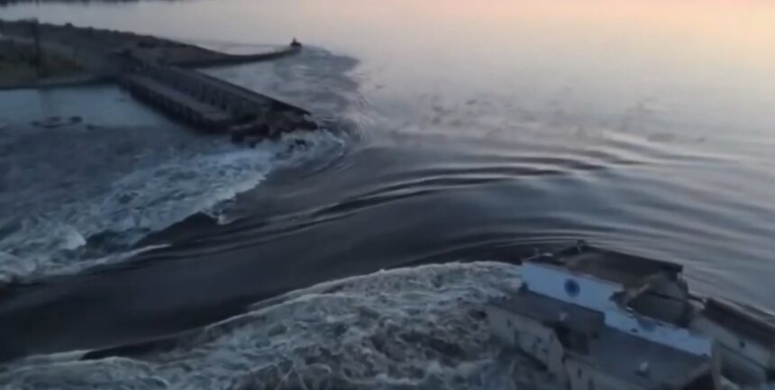 Непотврдени видеа на социјалните мрежи покажуваат серија интензивни експлозии околу браната Какховка. Друго видео покажува како вода протекува низ остатоците од браната.