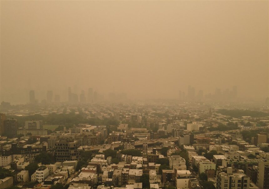 Смогот доаѓа од раширените шумски пожари во канадските провинции Квебек и Нова Шкотска, каде пожарникарските служби се борат за нивно санирање.