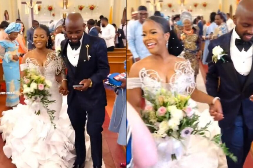 Видеото, кое беше споделено на TikTok, а потоа избришано од профилот што првично го објави, подоцна заврши на Твитер каде што собра десетици милиони прегледи. Коментаторите на социјалните мрежи пишуваат претпоставки што прави младоженецот, но и каков ќе биде нивниот брак.
