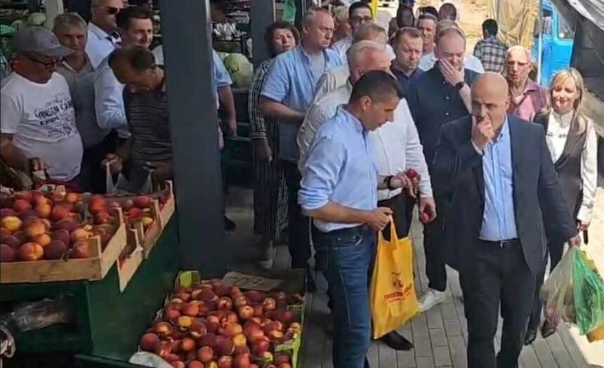 Премиерот Димитар Ковачевски и министерот за земјоделие, Љупчо Николовски денес присуствуваа на отворање на пазар во Делчево и, секако, моментот го искористија да си испазарат нешто и за дома.