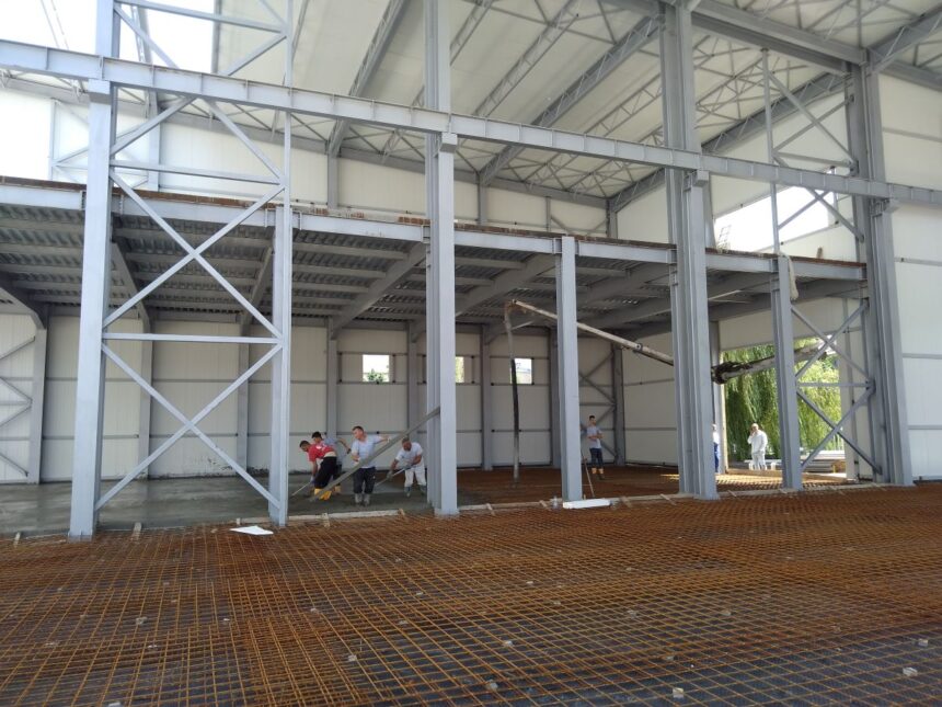 Вања Андонова, главен инженер-архитект во БРАКО, вели дека халата, вредна 2,5 милиони евра, брзо напредува и дека БРАКО сам ја произведува конструкцијата.