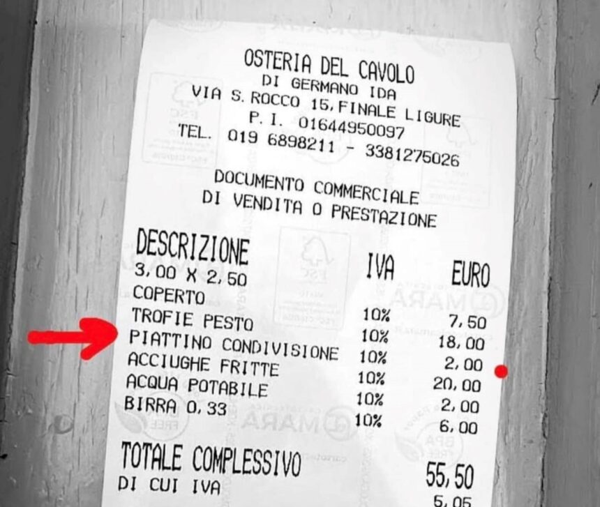 Во италијански ресторан на гости им наплатиле дополнителни две евра за празна чинија. Имено, извесна Селваџија Лукарели побарала сад повеќе за нејзината ќерка да ги проба тестенините, а на сметката се појавила и таа чинија. Откако посетителката ја објави сметката на својот интернет-простор, и регионалниот гувернер Џовани Тоти јавно го осуди овој потег на ресторанот.