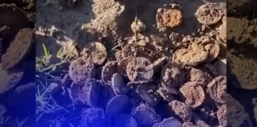 Тој ископал повеќе од 800 кованици што датираат од 1840 до 1863 година. Видеоснимка од откритието објави „Говминт“ (GovMint), куќа специјализирана за продажба на монети.
