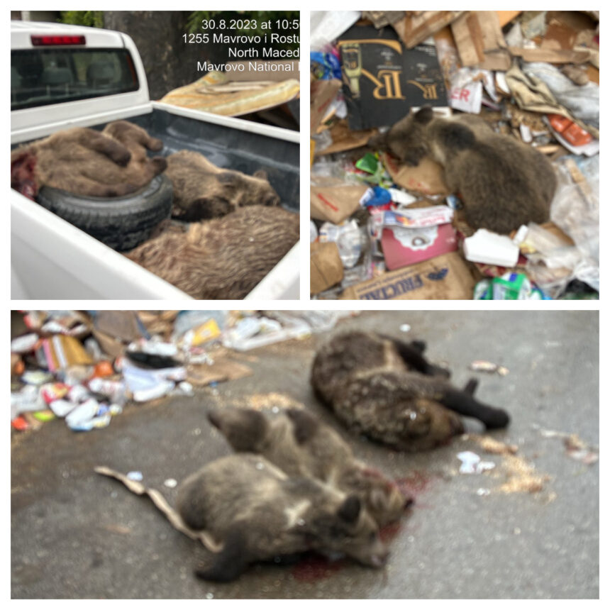 Во ладилник се пренесени усмртените две мечиња со мајката, кои изутрината од ренџерската служба биле пронајдени во Националниот парк „Маврово“. Мечињата со мечката се најдени во крв едно до друго, фрлени во дива депонија.