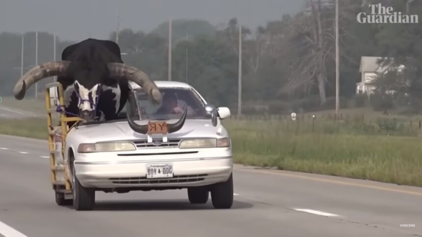 Мејер, чиј автомобил е специјално опремен за да може бик да се смести на совозачкото седиште, тоа го направил веднаш, пишува ало.рс