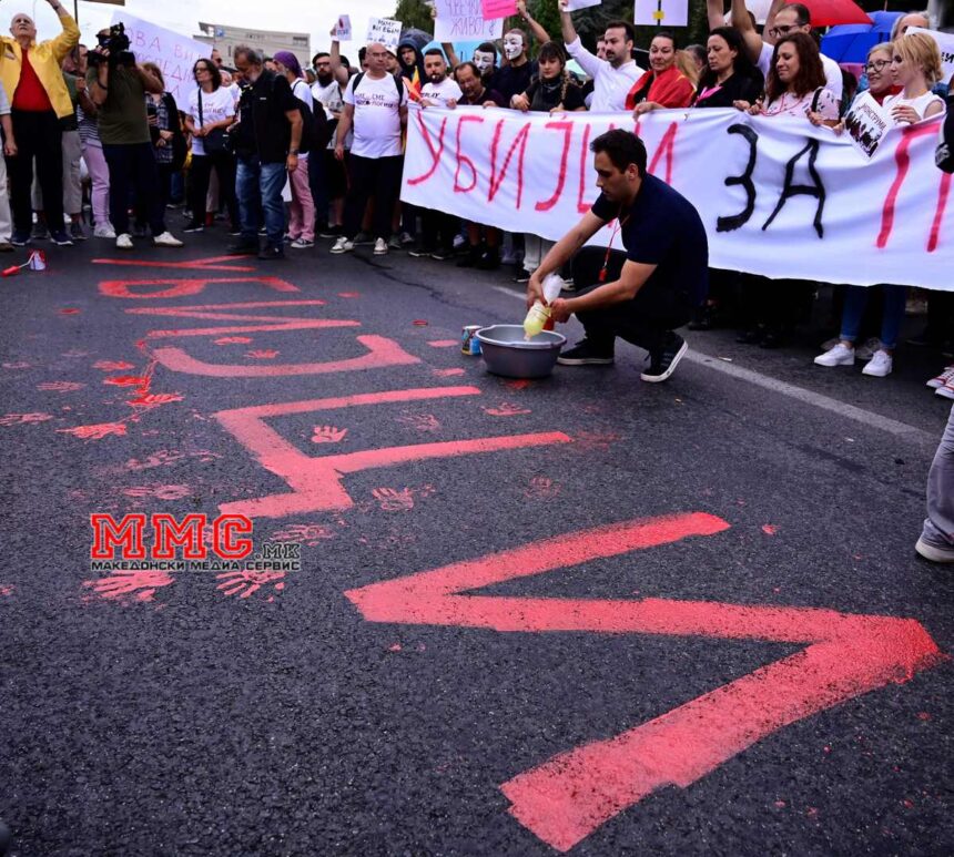 Протестот потоа продолжи пред зградата на Јавното обвинителство каде својот револт го изразија со фрлање јајца.