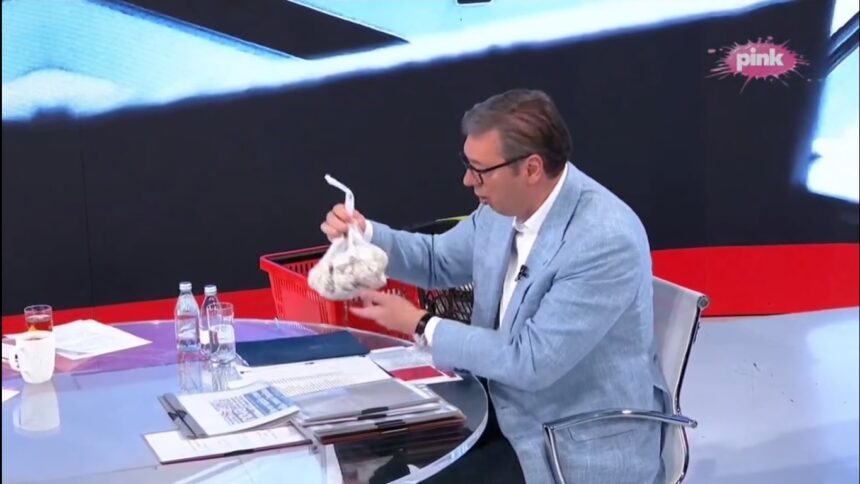 Не престануваат реакциите на потегот на Александар Вучиќ да сними видео во кое „јаде паризер“ и најавува поевтини цени за три артикли, а тој се појави со корпа од маркет, а за да претстави дополнителни производи – „вкупно 37 артикли кои ќе поевтинат“.