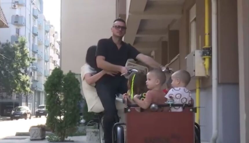 Кога имате четири деца, тогаш мора да се организирате на разни начини. Семејството Крстиќ од Шабац дел од проблемот го има решено со необично превозно средство, односно сите шест члена се превезуваат со еден велосипед.