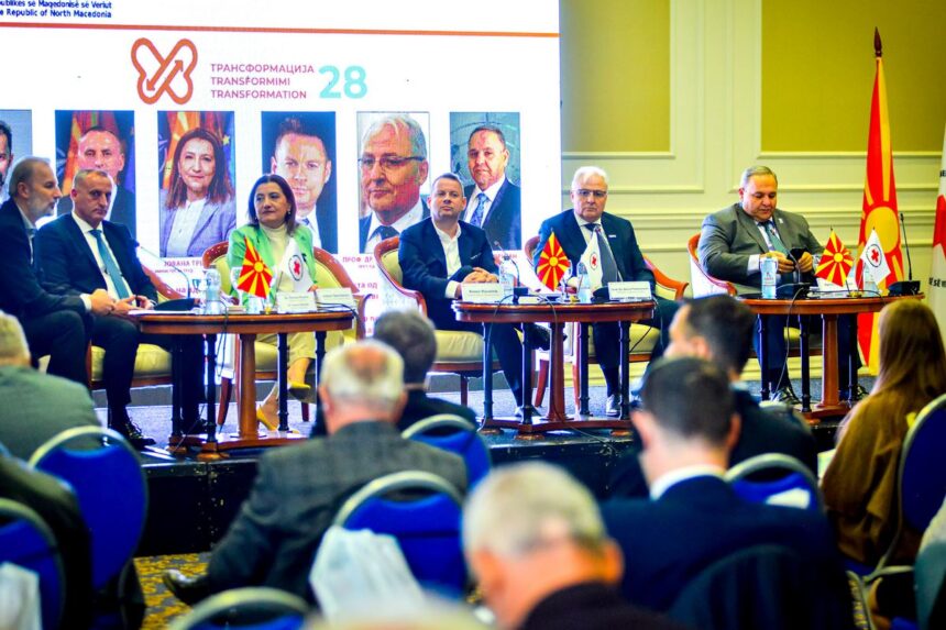 На панел-дискусијата учествуваа и министерот за здравство, д-р Фатмир Меџити; министерката за труд и социјална политика, Јована Тренчевска; претседателот на „Црвен крст на Република Србија“, д-р Драган Радовановиќ, и Армен Грегоријан, постојан претставник на УНДП во земјава. Развојната рамка на „Црвен крст на РСМ“ „Трансформација 28“ најави реформи и реорганизација на националното друштво, таргетирајќи четири области: реорганизација на инфраструктурата, односно на организациската поставеност на „Црвен крст“, културолошка трансформација, дигитализација, како и реорганизација на програмите на „Црвен крст“.