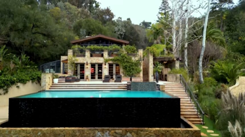 Имотот има девет спални соби и 13 бањи. Има и вежбалница, амфитеатар, тераса и огромен базен. Џенифер Лопез и Бен Афлек размислувале да ја реновираат куќата, но очигледно се премислиле. Американската латино-пејачка го купила ова здание за 28 милиони долари од глумицата Села Вард пред седум години години.