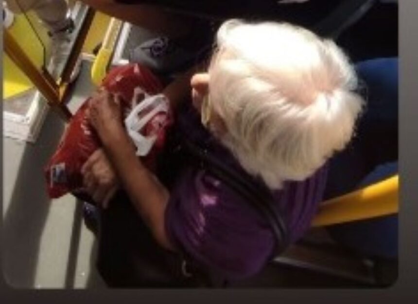 Фотографијата на која се гледа млад човек кој седи во јавен превоз, гледа во својот телефон, додека една постара баба седи до него речиси на подот со торба во рацете, брзо стигна во рацете на корисниците на Твитер, кои беа најгласни и овој пат. Но, за среќа на момчето од приказната, тие објаснија за што се работи.