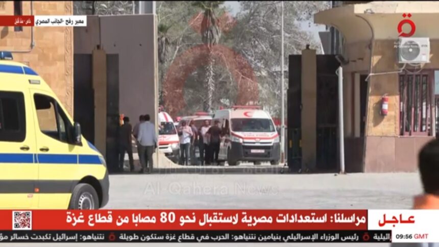 Снимките во живо прикажани на телевизиски станици блиски до египетското разузнавање покажаа како амбулантни возила влегуваат на египетската страна на терминалот Рафа за да ги однесат како што рекоа официјалните лица, околу 90 од најтешко болните и ранетите Палестинци на лекување во египетските болници. МИА