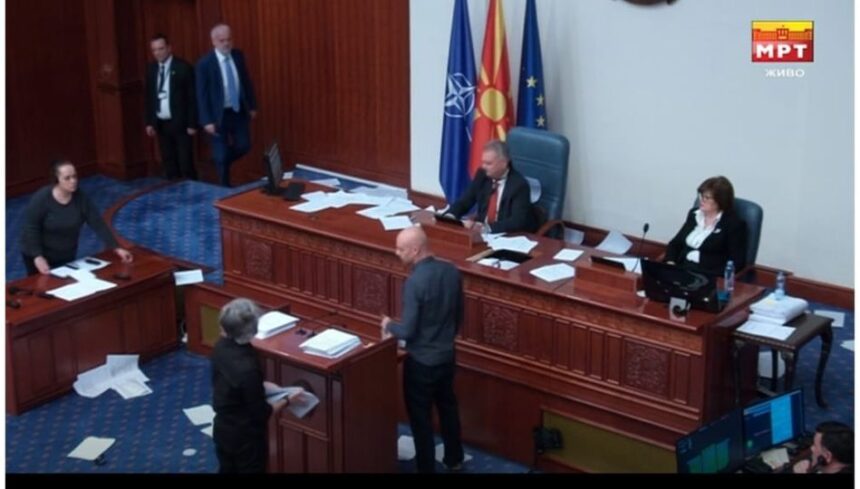 Левица поднесе 2.000 амандамни во обид да се спречи донесувањето на новиот Деловник на Собранието. Сите беа одбиени од претседателот Талат Џафери, по што се случи индидентот и работата на пратениците е прекината.