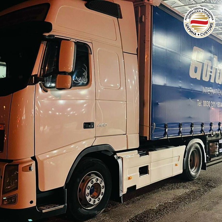 Царински инспектори од Секторот за контрола и истраги од Царинската управа привремено задржаа товарно моторно возило со полуприколка, натоварено со алуминиумски котури во вредност од 92.635,70 евра, откако возачот на возилото – странски државјанин, при влез во Република Северна Македонија на ГП Богородица се обидел на царинскиот орган да му стави на увид транспортно средство на кое е поставено царинско обележје – пломба и овозможил отварање на делот од возилото во кое е сместена стоката.