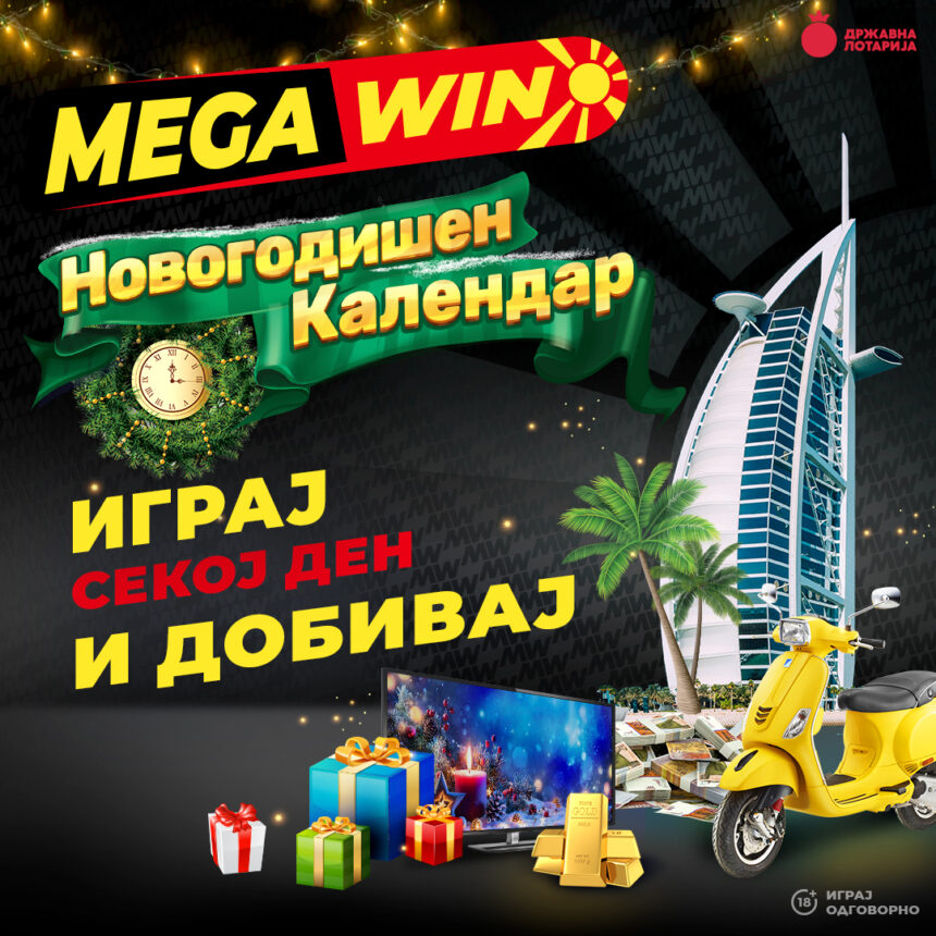 Скопје, 20.12.2023 година – Од денес, сите регистрирани и нови учесници во игрите на среќа на веб-страната www.megawin.mk на Државна лотарија, имаат нова можност за уште повеќе забава и големи награди, со учество во новата наградна игра НОВОГОДИШЕН КАЛЕНДАР со награден фонд од близу 5 500 000 денари.