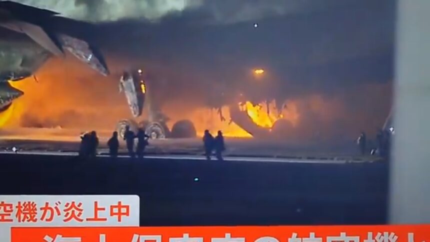 🇯🇵 | URGENTE: El vuelo JL516, un Airbus A350 operado por Japan Airlines con más de 360 almas a bordo, acaba de chocar con avión de la Guardia Costera japonesa mientras aterrizaba en aeropuerto internacional de Tokio-Haneda, provocando varios incendios.