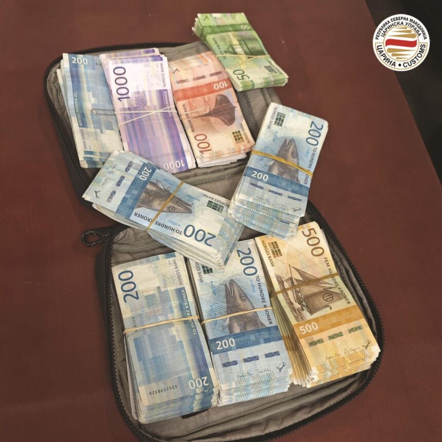 -Запленети 185 илјади норвешки круни, откако патник на излез од државата на Аеродром Скопје не ги пријавил истите кај царинскиот орган. Патникот, инаку норвешки државјанин со потекло од Косово, со себе во црна торба носел 305 илјади норвешки круни кои царинските службеници ги пронајдоа при контрола на скенер, се вели во соопштението.