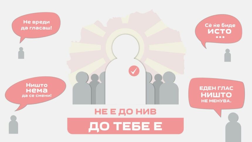 -Затоа што секогаш ќе наидете на некој што ќе ви каже „Твоето едно гласче на овие избори нема да промени ама баш ништо“, подготвена е и видео приказна со силна порака која ќе биде најсилен демант на сите такви коментари. Одговорот е јасен и едноставен „Ќе гласам затоа што дефинитивно не е до нив, до мене е“. „Не вреди да гласаш“, „Нема ништо да се смени“, „Еден глас ништо не менува“, „Сѐ ќе биде исто“… И така до недоглед, може да се набројуваат изговори кои нѐ делат од иднината што ја посакуваме и која можеме сами да ја креираме, затоа не е до нив, до тебе е – гласај без изговори, беше кажано вечерва во Струмица.