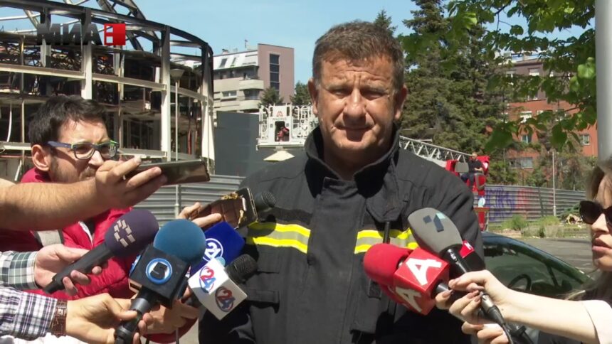-Интервениравме до девет возила и 24 пожарникари. За кусо време, благодарение на пожртвуваноста на колегите, пожарот беше ставен под контрола, иако имаше висока температура во објектот. Би сакал да се заблагодарам на полицијата и Комунална хигиена и Водовод кои конинуирано не снабдуваа со вода. Причините ќе ги утврди полицијата. Нема повредени од колегите, немало градежни работници во моментот. Има оштетување на околните објеки поради високата температура, но за среќа нема повредени. Штетата сега не може да ја констатираме. Настана колапс на кровната конструкција, се уше се работи на догаснување, има висока температура и не може да се влезе, додаде тој.