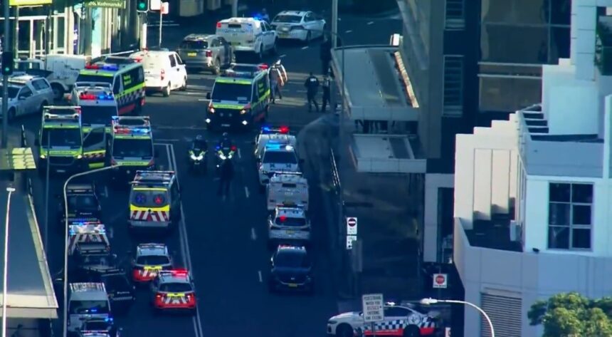 Помошникот на полицискиот комесар на Нов Јужен Велс, Ентони Кук, рече дека наводниот напаѓач се соочил со полицајка која го следела до петтото ниво од комплексот.