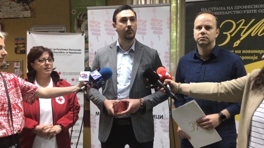 – Го одбележуваме 3 мај Светскиот ден на слободата на медиумите, меѓутоа секогаш кога зборуваме за слободата се присетуваме на овој ден што јас неволно сакам да констатирам дека е премалку во еден ден да се собереме и пожалиме. Затоа денеска оттука треба да испратиме неколку пораки, а тоа е поврзувано со слободата на медиумите, слободата на изразување и правото на слобода на говор. Кога зборуваме за слободата на говор да не заборавиме дека слободата на медиумите се темели на здраво работно место и слобода на изразување. Оттука треба да си го поставиме прашањето дали ние работиме во такви услови? За да одговориме на ова прашање треба да констатираме дека 70 проценти од вработените или над 2 000 медиумски работници се со плати под просекот во државата и ист толкав број сакаат да ја напуштат оваа професија. Воедно над 100 наши колеги го загубиле животот во светот, затоа треба да се солидаризираме и денеска со оваа крводарителска акција да покажеме дека се грижиме за демократијата и преку нашата работа градиме подобри општества, порача Беловски.