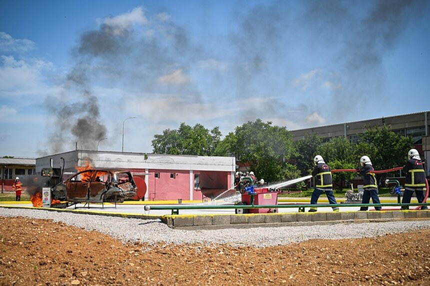 На презентацијата на новиот тренинг-центар беше изведена и показна вежба на противпожарната единица на ОКТА која ја следеа претставници на Центарот за управување со кризи и на неколку противпожарни бригади од земјава.