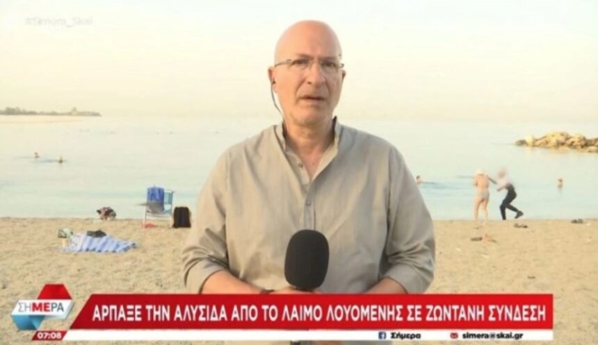 Повозрасна жена остана без нејзиното ланче на атинска плажа откако во моментите кога се подготвуваше да влезе во море, непознато лице насилно и го извади од вратот и побегна, а сето тоа го сними грчката телевизија Скај за време на вклучувањето во живо за сосема друга тема, јави дописничката на агенцијата МИА од Атина.