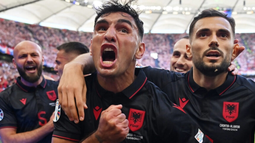 Албанските навивачи на денешниот дуел против Хрватска (2-2) во Хамбург истакнаа на трибините знаме со порака „Косово е Албанија“ кое по реакција на организаторите мораа да го отстранат, пренесува агенцијата БТА.