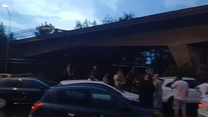 Во населбата Автокоманда се сруши дел од оградата од мост заедно со рекламно пано. Конструкцијата паднала врз две возила во движење, а засега нема имформации за повредени лица. Сообраќајот е во застој, возилата се пренасочуваат кон населбата Маџари, информира 360степени.мк