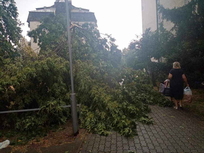 Невреме зафати попладнево делови од главниот град, кое беше проследено со дожд и силен ветер. Во општина Аеродром снема струја и дел од семафорите не работеа.