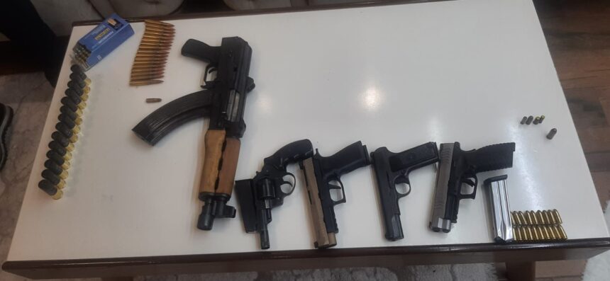 Во домот на двајца полициски службеници во скопски Сингелиќ вчера полицијата пронашла оружје. До претрес на нивниот дом дошло откако двете лица објавиле фотографии со оружје на социјалните мрежи. Од МВР информираат дека против лицата ќе следи соодветна кривична пријава.