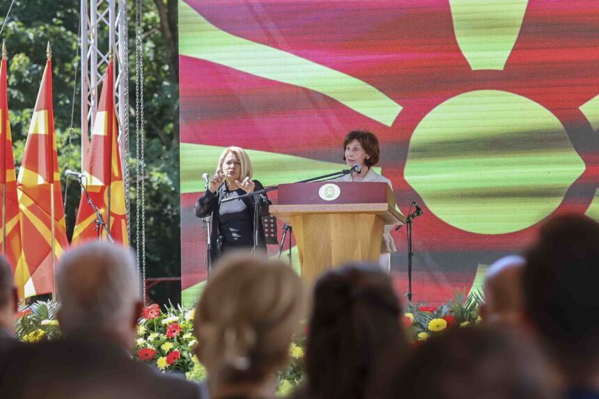 -Поклонувајќи се пред спомениците на нашите илинденци, партизани и асномци, ќе забележиме дека и покрај разликите, речиси сите имаат две нешта заеднички. Тоа се нивните идеали и нивната младост. Во минатото, младите се жртвуваа за нашата слобода. Денес, ние мора да се жртвуваме за иднината на младите. Таа наша жртва подразбира да не правиме компромис со нивната иднина. Колку и да е тешко, ние мора да создаваме услови за младите Македонци, Албанци, Турци, Срби, Роми, Власи, Бошњаци не само да трагаат, туку и да ја остваруваат својата среќа тука во нашата единствена и нивна заедничка татковина. Да ги оставиме на страна поделбите и караниците, тесните партиски и лични интереси, и да се сплотиме околу општото добро и јавниот интерес. Преку таа жртва, ние всушност ќе учествуваме во создавањето на новата, четврта македонска република, рече престедателката.