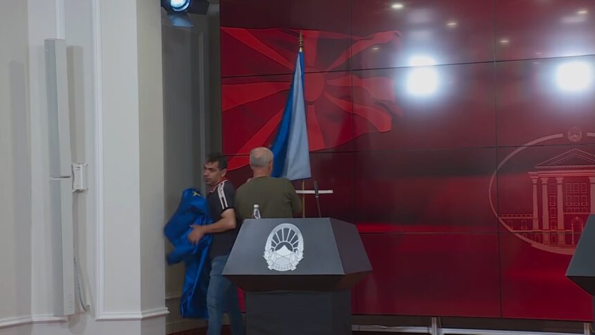 -Во врска со информацијата објавена од „Топ Чанел”, сакаме да истакнеме дека се работи за класична лажна вест. Обидот за намерно создавање забуна е повеќе од очигледен и нема да помине кај ниту еден свесен граѓанин. Имено, ако внимателно се гледа видеото, јасно може да се забележи дека се работи за промена на постојното знаме на ЕУ, кое беше таму на претходната прес-конференција, со ново знаме за настанот што следеше подоцна со косовскиот премиер. Не е згрешено знамето, па сменето, туку едноставно снимена е замената на знамињата односно во прилогот злоупотребен е моментот кога е заменето знамето на ЕУ кое стои до државното за да се стави знамето на државата од каде доаѓа гостинот, во случајот премиерот на Косово, се вели во демантот од Влада.