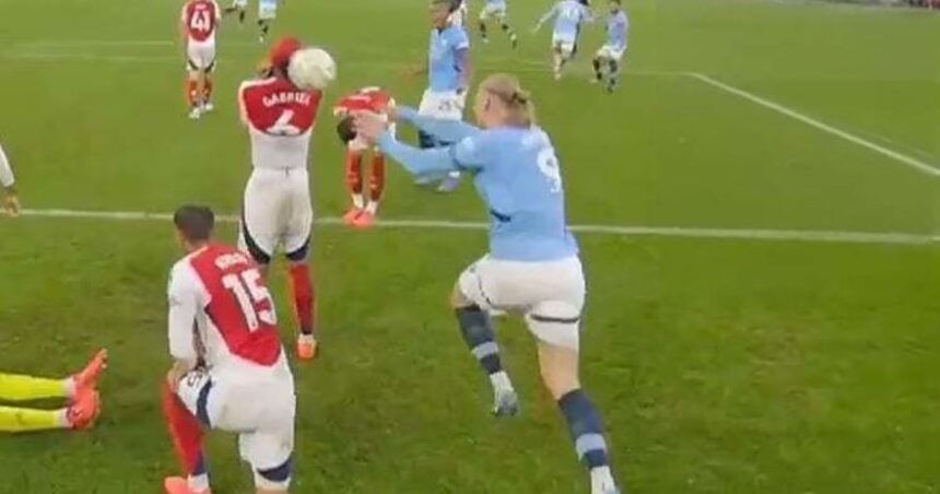 Откако Џон Стоунс го постигна израмнувачкиот погодок, Халанд налета на голот на Арсенал, ја зграпчи топката и ја фрли во задниот дел од главата на дефанзивецот на Арсенал, Габриел, кој беше свртен со грбот кон Норвежанецот.