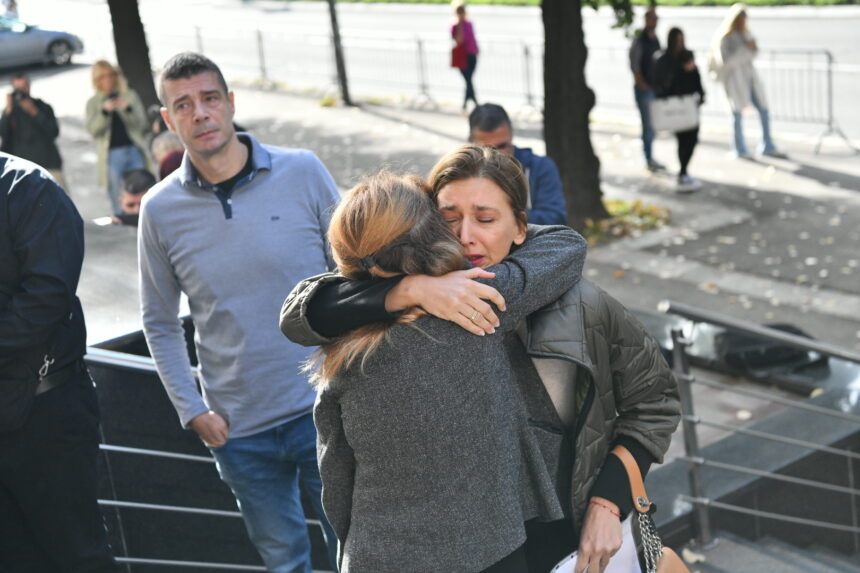 Расплаканите родители на убиените деца утрово се поздравија пред зградата на Специјалниот суд на улицата Устаничка во Белград, по што заедно влегле во зградата каде што пристигнал малолетниот убиец Коста К. утрово околу 9 часот. Неговото сведочење во постапката против неговите родители е закажано за денеска, а постои можност да го оствари законското право да не сведочи.