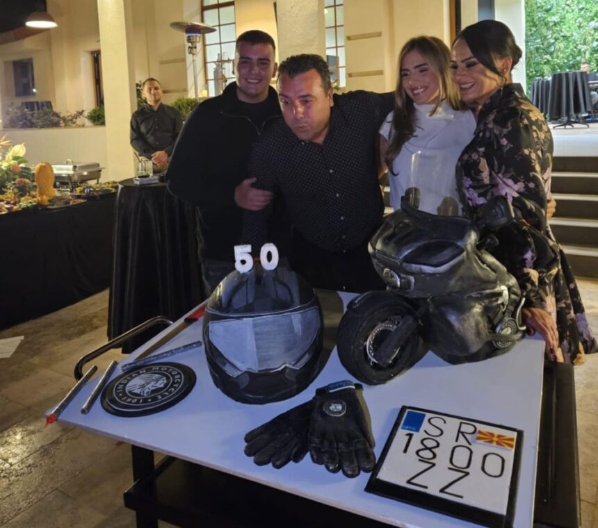 Заев имал неколку роденденски торти, односно роденденската торта била составена од неколку дела и тоа мотор, кацига, ракавици и регистрација.