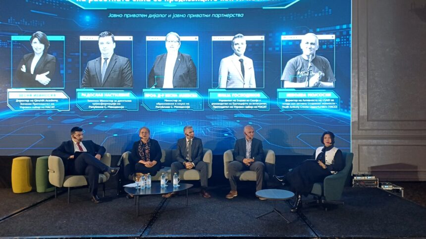 Ова го истакна министерката за образование и наука на дебатата со наслов „Дали имаме национален капацитет за брза адаптација на работната сила со предизвиците кои ги носи вештачката интелигенција?“, организирана во рамки на 19та годишна конференција на МАСИТ – Стопанска комора за информатички и комуникациски технологии, што денес и утре се одржува во Скопје.
