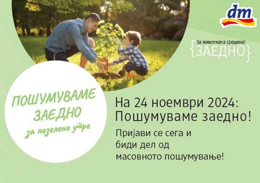 Компанијата dm со гордост ви го најавува третото продолжение на еко-проектот „Пошумуваме заедно за позелено утре“! Овој проект тие го започнаа во 2022 година, а до сега посадија речиси 60.000 нови садници. Оваа година имаат за цел да ја стигнат спектакуларната бројка на 100.000 засадени дрвја!