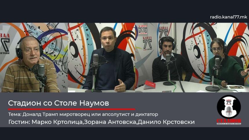 Доналд Трамп миротворец или апсолутист и диктатор – Марко Кртолица, Зорана Антовска, Данило Крстовски – Стадион на Канал 77 – 09.11.2024 Објавено на: 14/11/2024 во 15:09 09/11/2024 0 мин читање Сподели ©ММС.мк Крадењето авторски текстови е казниво со закон. Преземањето на авторски содржини (текстови и фотографии) од оваа страница е дозволено само делумно и со ставање хиперлинк до содржината што се цитира. Услови за превземање Тагови на веста: видео, канал 77, стадион, трамп Кире 09/11/2024 НАЈНОВИ вести Бизнисмените чија компанија се најде во Топ пет по заработка од фотоволтаици се донатори на 20-метарскиот крст во Штип Снаата со јастук се обидела да ја задуши бабата на сопругот, седнала врз неа и ја удирала со тупаници На ниту еден граѓанин не му беше скратено правото да присуствува на вчерашниот протест во Кочани, демантираат од МВР Кедев: Во здравството се соочуваме со непотребни интервенции кои се профит ориентирани Пет месеци од несреќата во Кочани – обвинението чека рокови, протести со инциденти речиси секоја сабота Кривична за скопјанец, примил 10.000 евра мито за да влијае врз судски одлуки Најчитани вести Социјални медиуми 70k Следачи Лајкни Не 3.3k Следачи Заследи Не 4.7k Следачи Заследи Не 3.1k Претплатници Претплати Се 21.6k Следачи Заследи Не 75 Претплатници Зачлени се