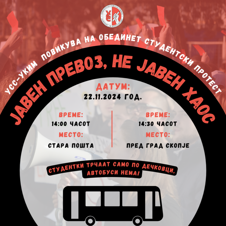 УСС-УКИМ преку писмено соопштение ги повика студентите да го искажат своето незадоволство поради недостигот на квалитетен јавен градски превоз на протест!