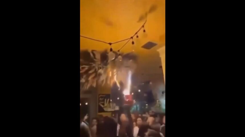 Инцидентот се случил додека келнерот ја доставувал роденденска торта на која имало поставени свеќи и пиротехника од кои се запалил дел од новогодишниот декор во внатрешноста на кафулето, како и елката поставена на таванот.
