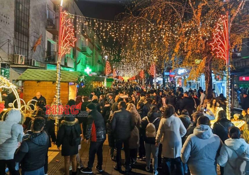 Улиците и мостовите низ централното градско подрачје, Плоштадот „Слобода“ и шеталиштето „Ванчо Прќе“ од синоќа и официјално блеснаа со светилки, санки, ѕвездени неба, елки, а поставени се и типските куќички на шеталиштето.